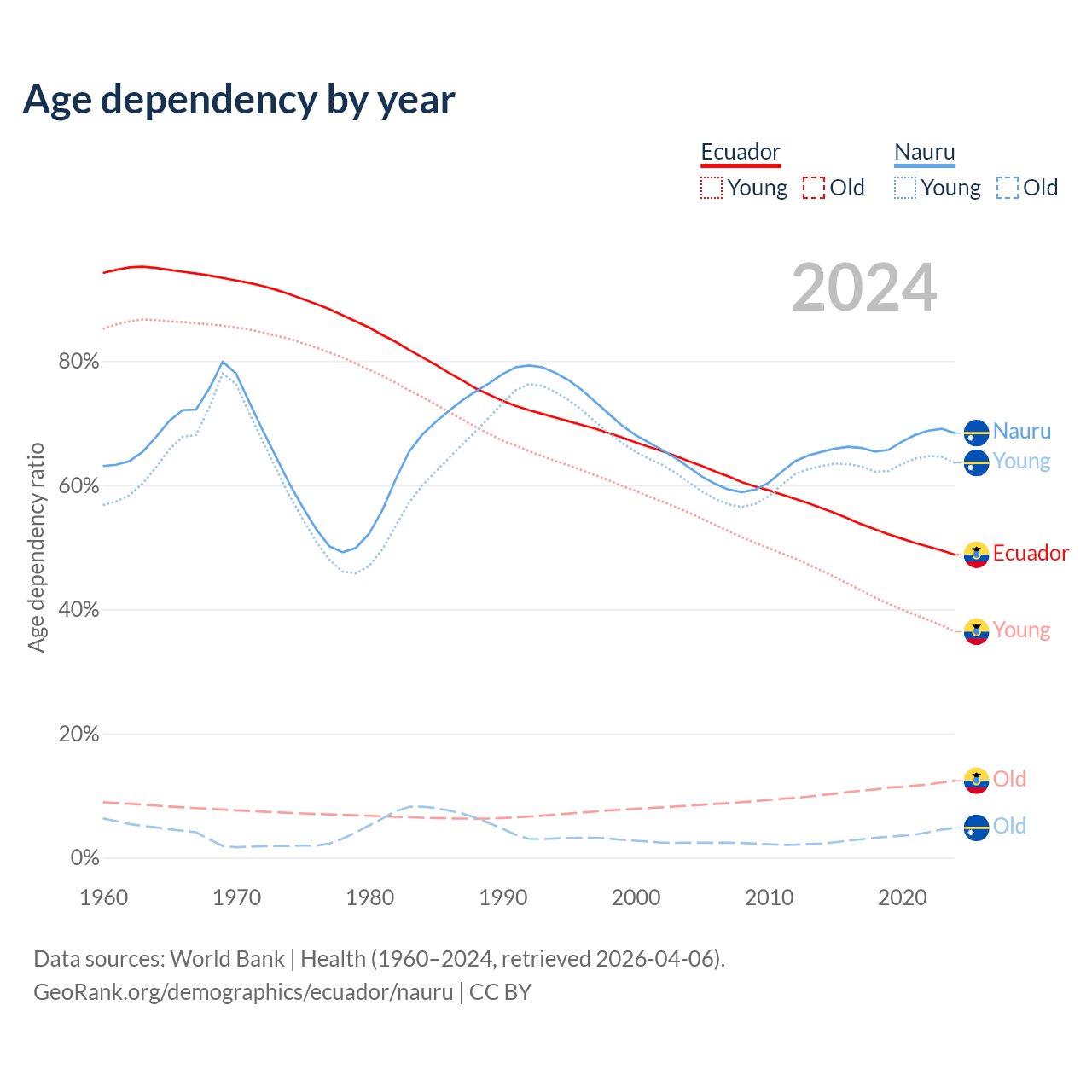 - The share of old-age demographic (65+) in Ecuador is 8.34% vs 2.85% in Nauru.