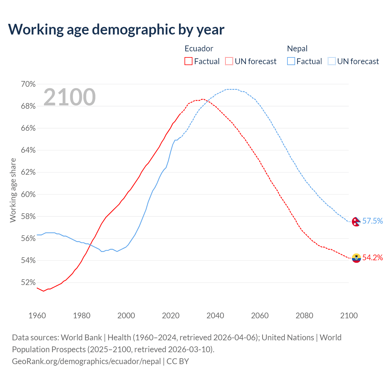 - Ecuador has 12.4M working age adults (aged 15-64) vs 19.3M in Nepal.