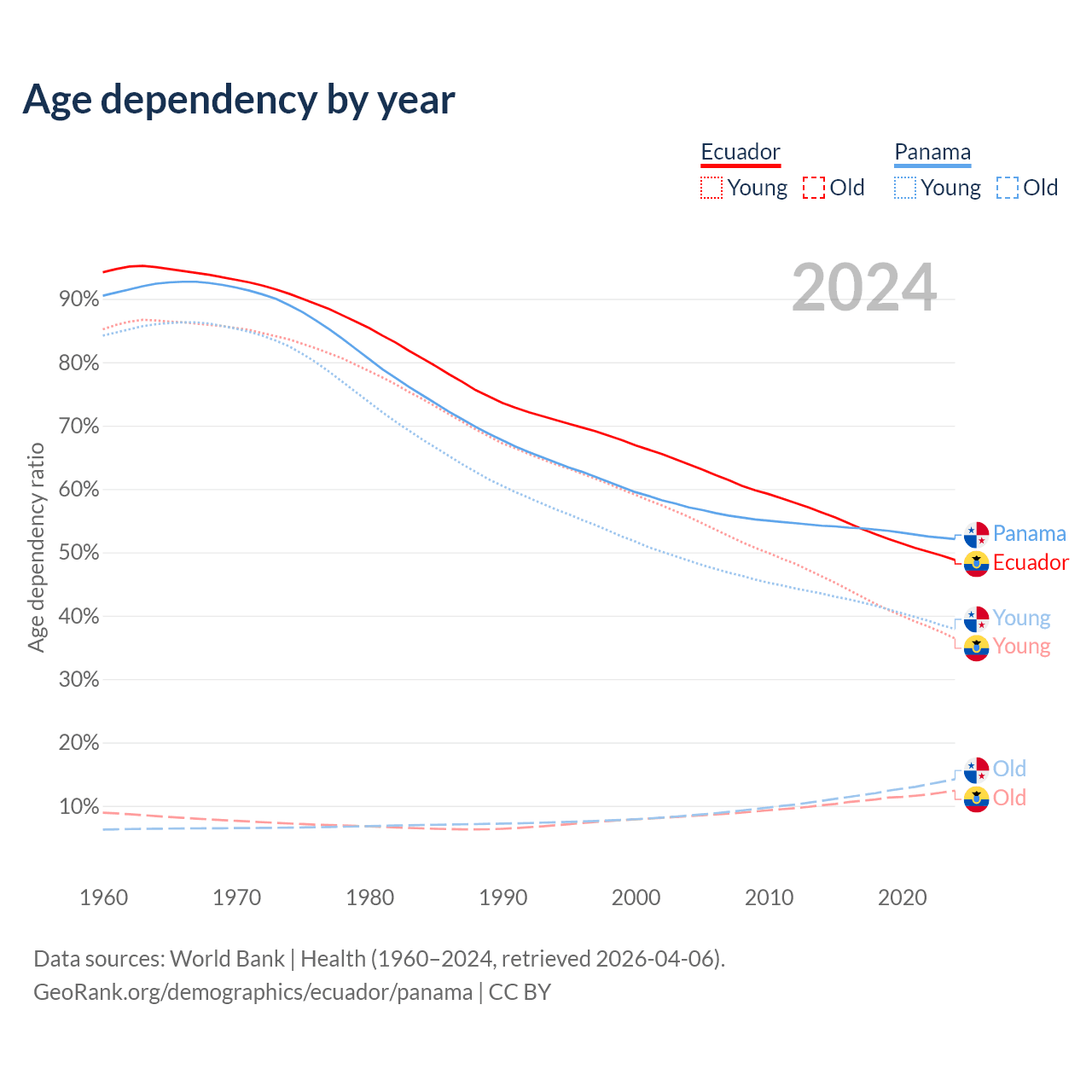 - Ecuador is ranked 105/196 by median age (oldest to youngest) vs 94/196 for Panama.