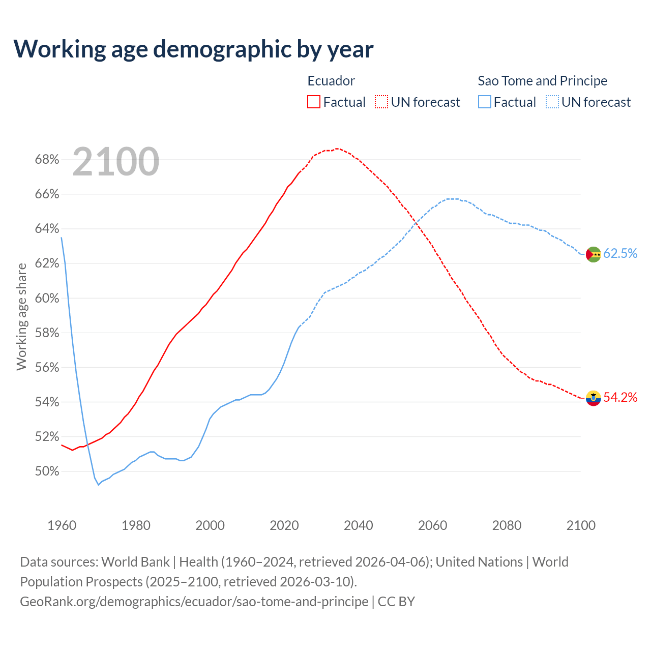 - Ecuador has 12.4M working age adults (aged 15-64) vs 144K in Sao Tome and Principe.