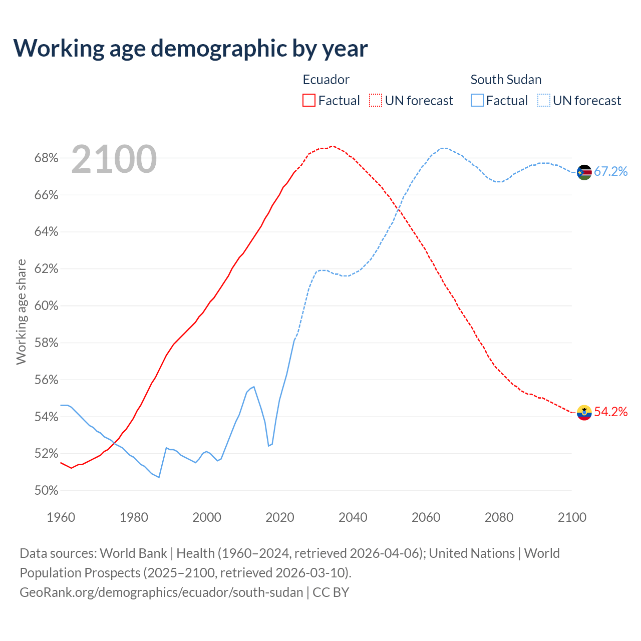 - Ecuador has 12.4M working age adults (aged 15-64) vs 7.27M in South Sudan.