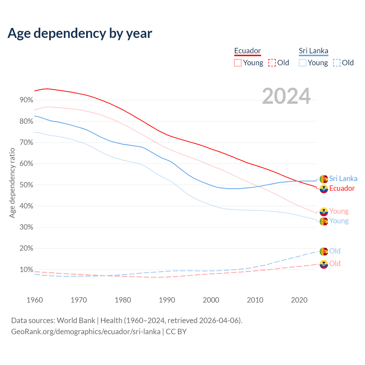 - The share of old-age demographic (65+) in Ecuador is 8.34% vs 12.1% in Sri Lanka.