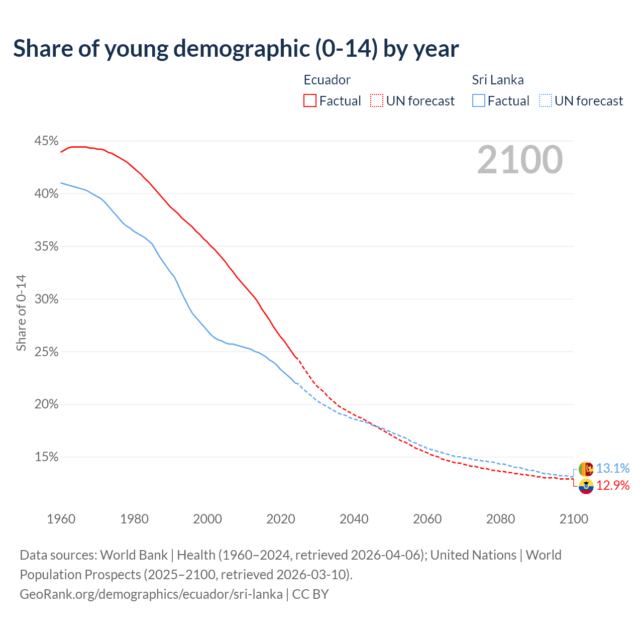 - The share of young demographic (0-15 years old) in Ecuador is 24.5% vs 22% in Sri Lanka.