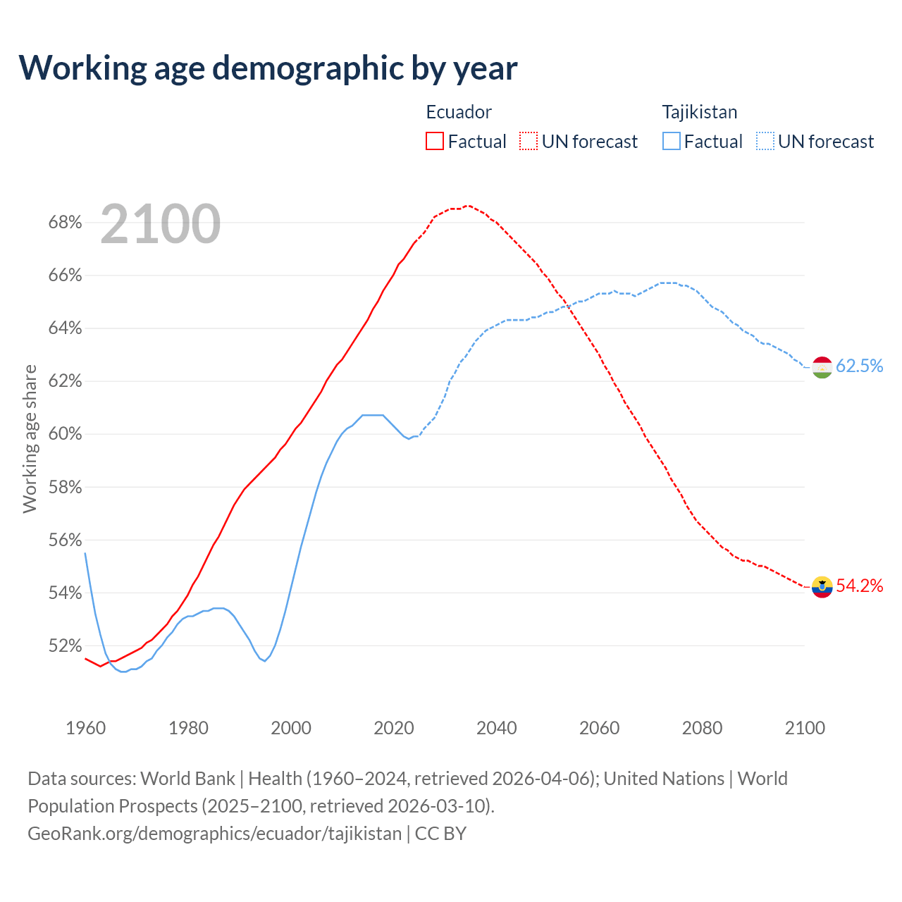 - Ecuador has 12.4M working age adults (aged 15-64) vs 6.61M in Tajikistan.