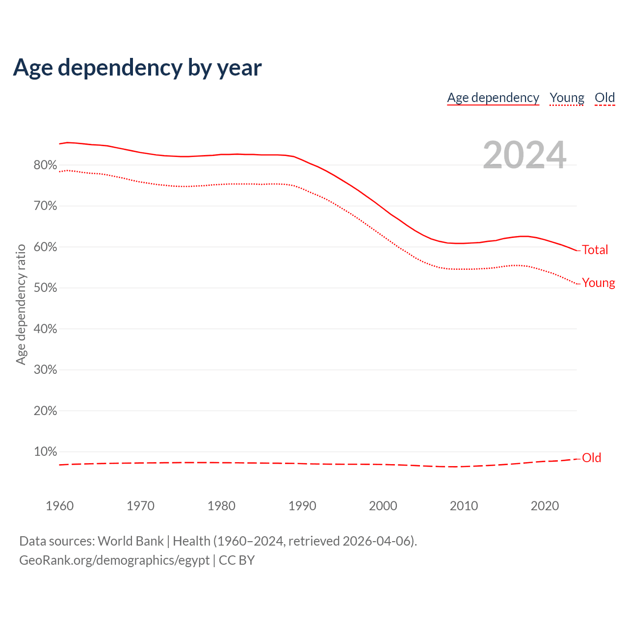 - World Bank | Health (1960–2024, retrieved 2026-04-06)