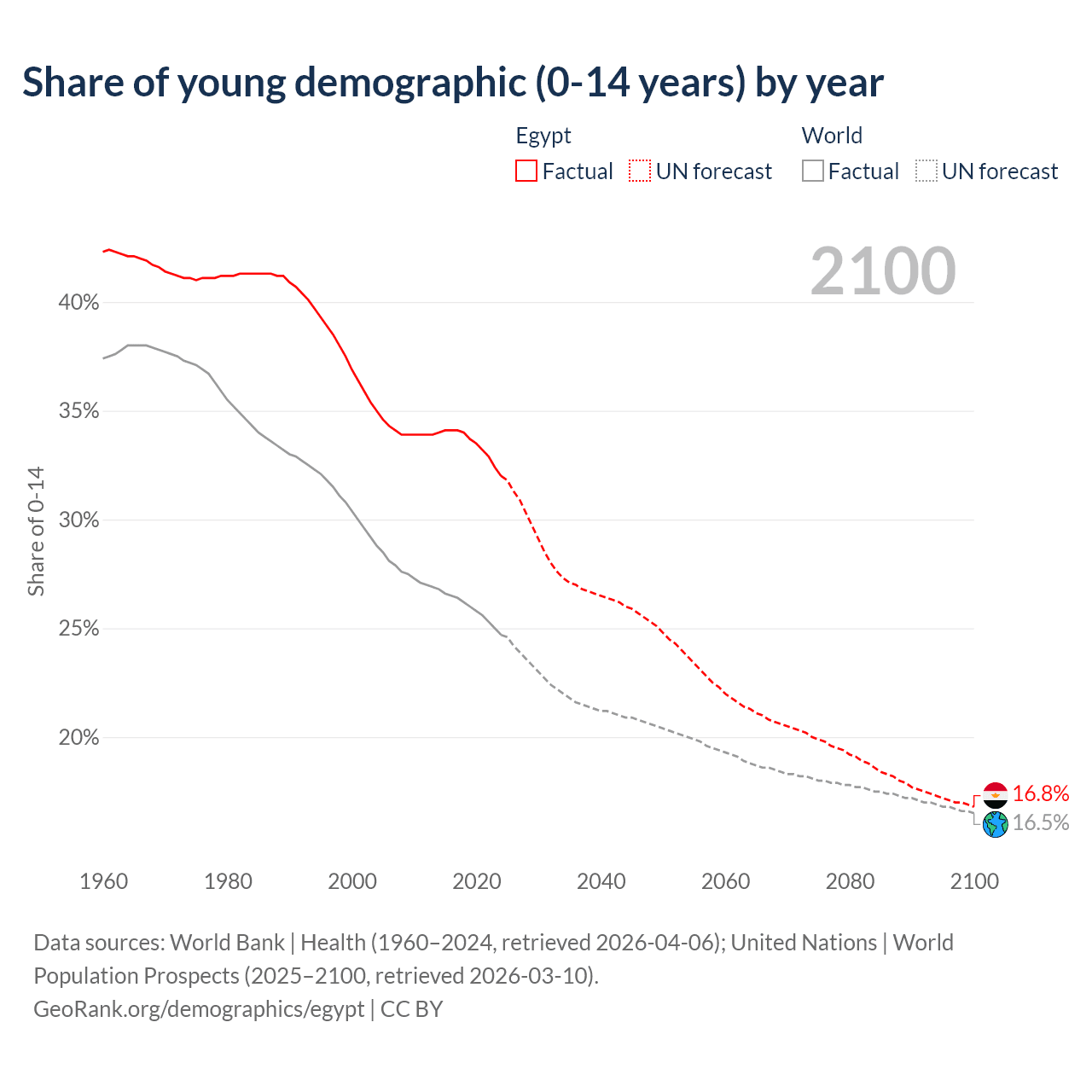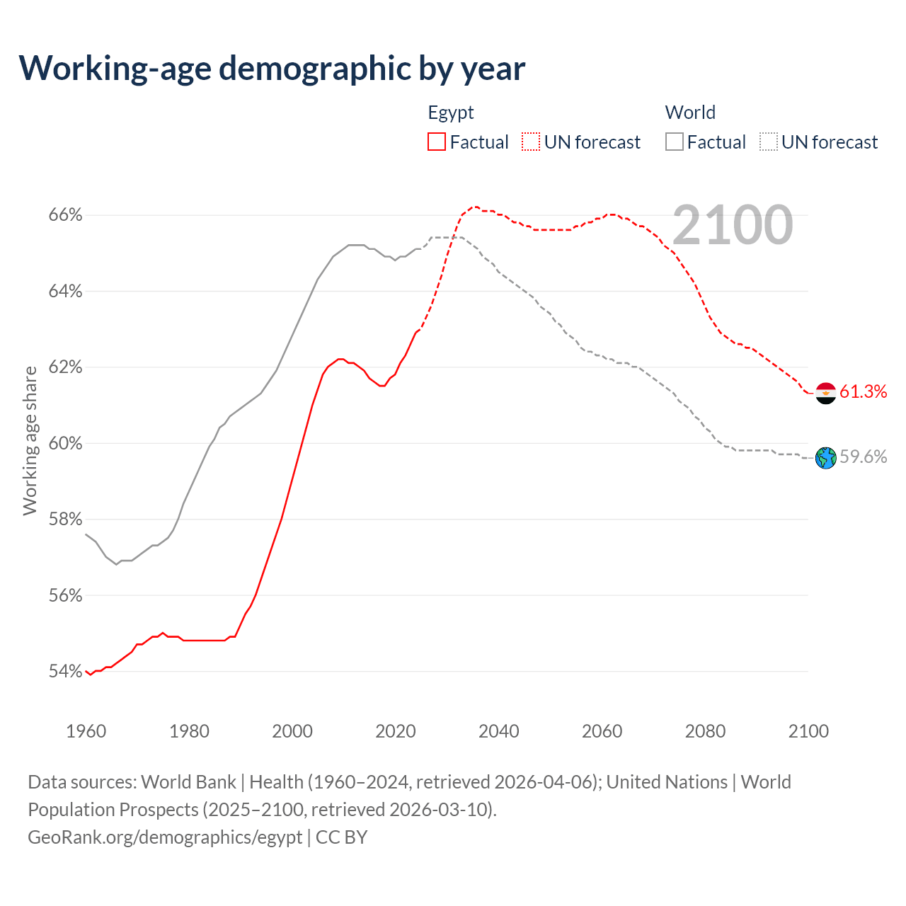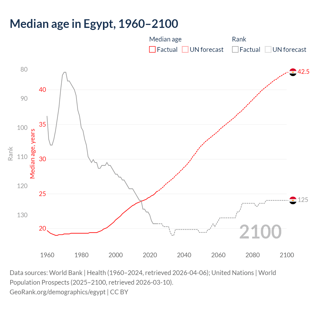 Median age in Egypt, 1960–2100