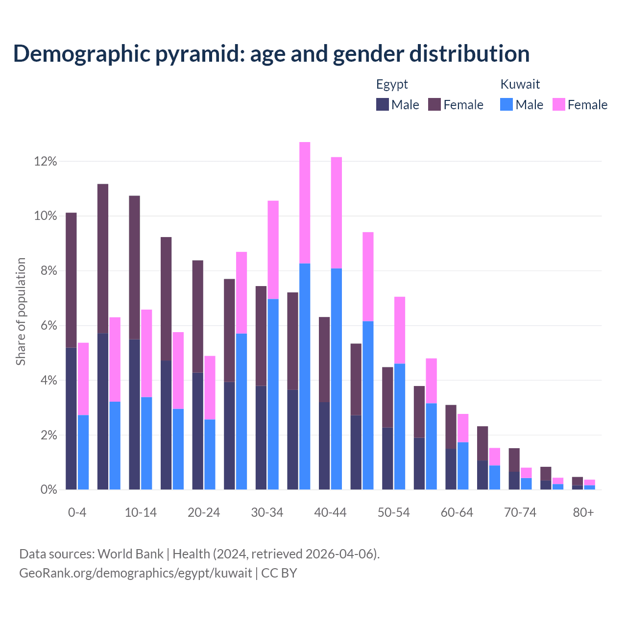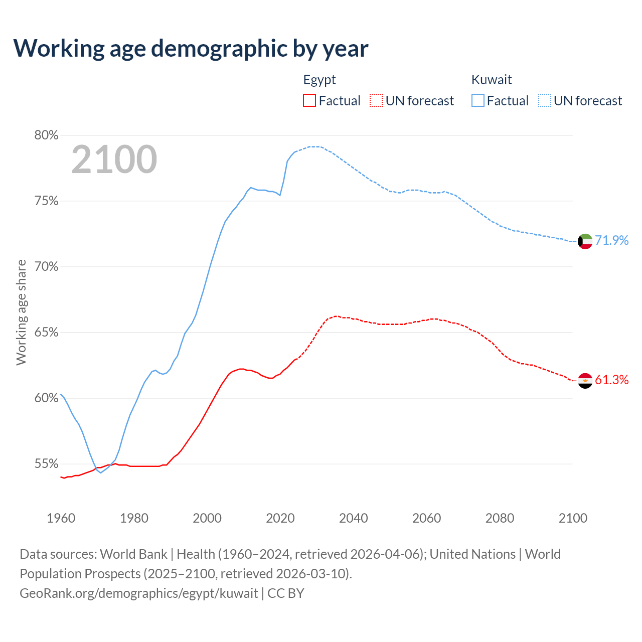 - Egypt has 75.9M working age adults (aged 15-64) vs 4.01M in Kuwait.