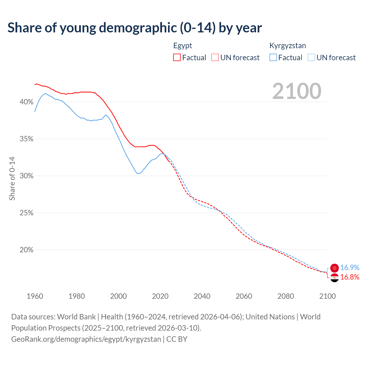 - The share of young demographic (0-15 years old) in Egypt is 32% vs 32.3% in Kyrgyzstan.