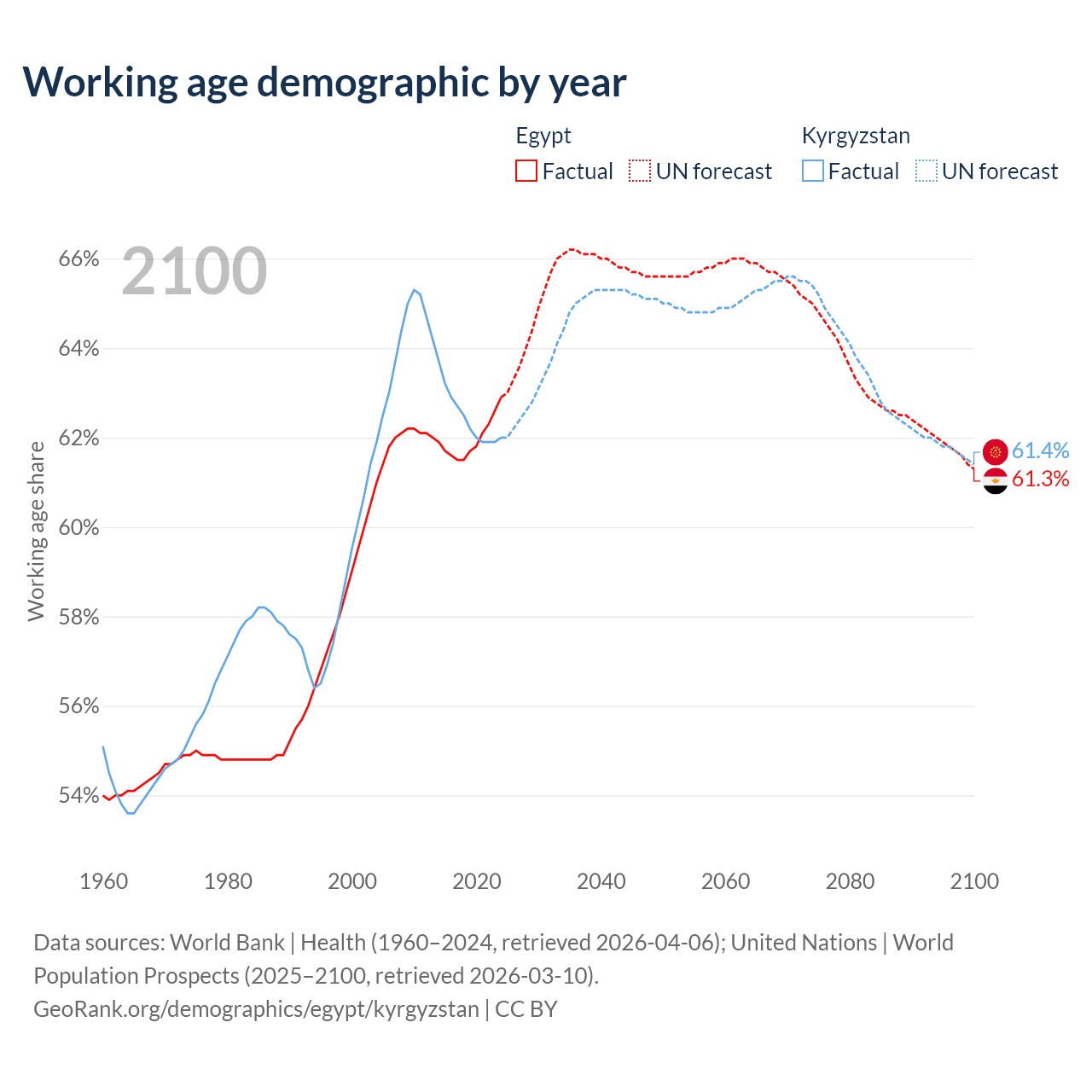 - Egypt has 75.9M working age adults (aged 15-64) vs 4.63M in Kyrgyzstan.