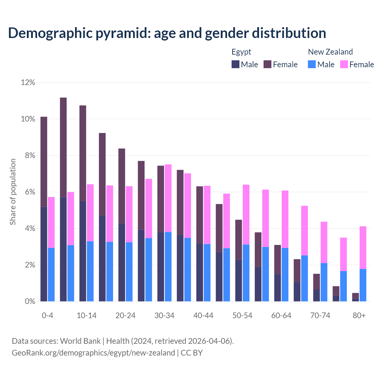 Demographics of Egypt compared to New Zealand: