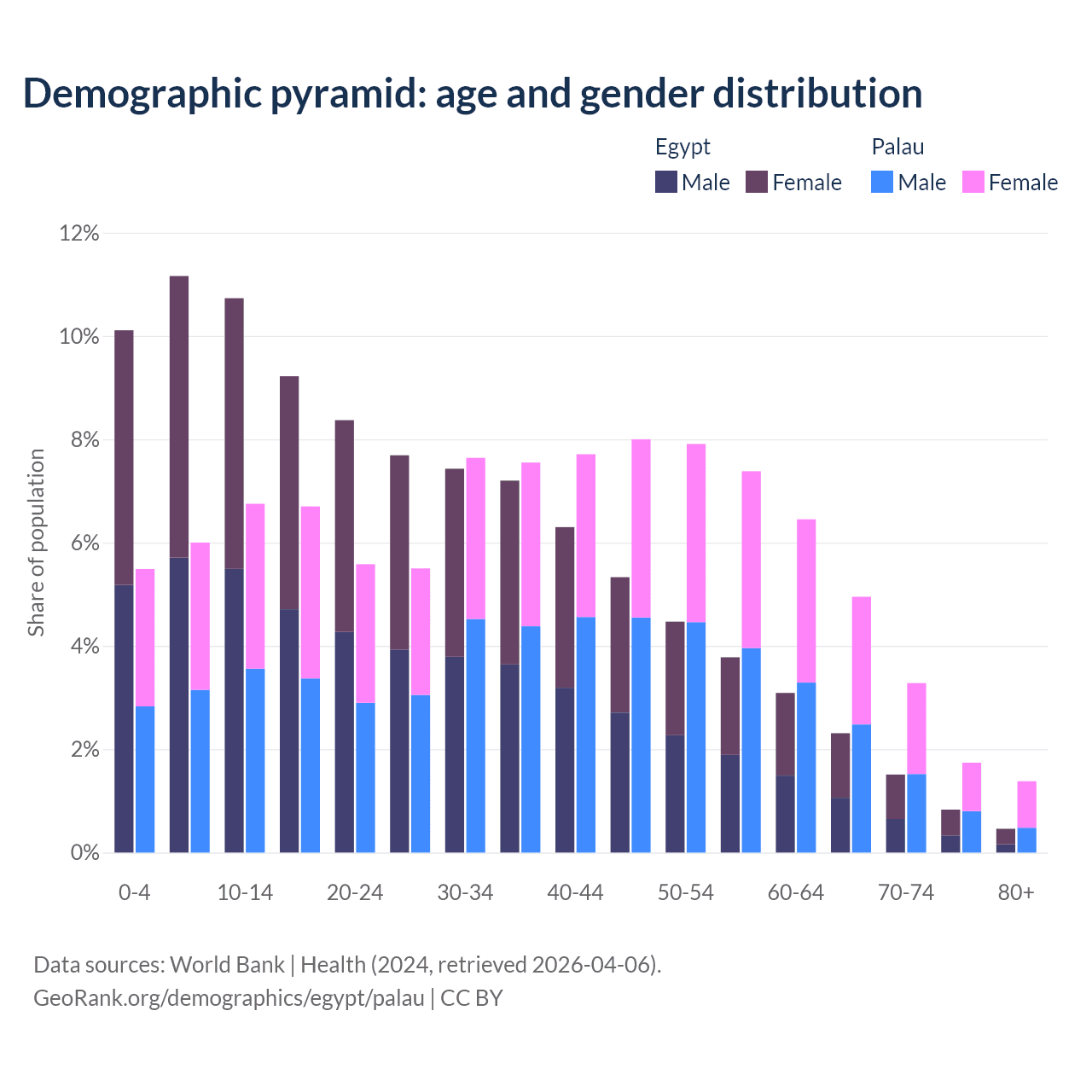 Demographics of Egypt compared to Palau: