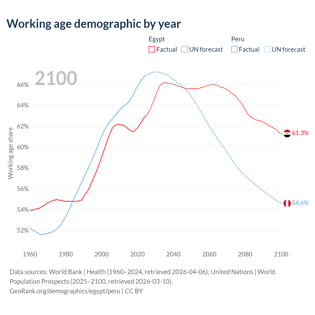 - Egypt has 75.9M working age adults (aged 15-64) vs 23.4M in Peru.
