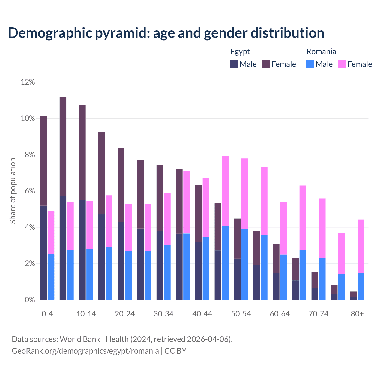 Demographics of Egypt compared to Romania: