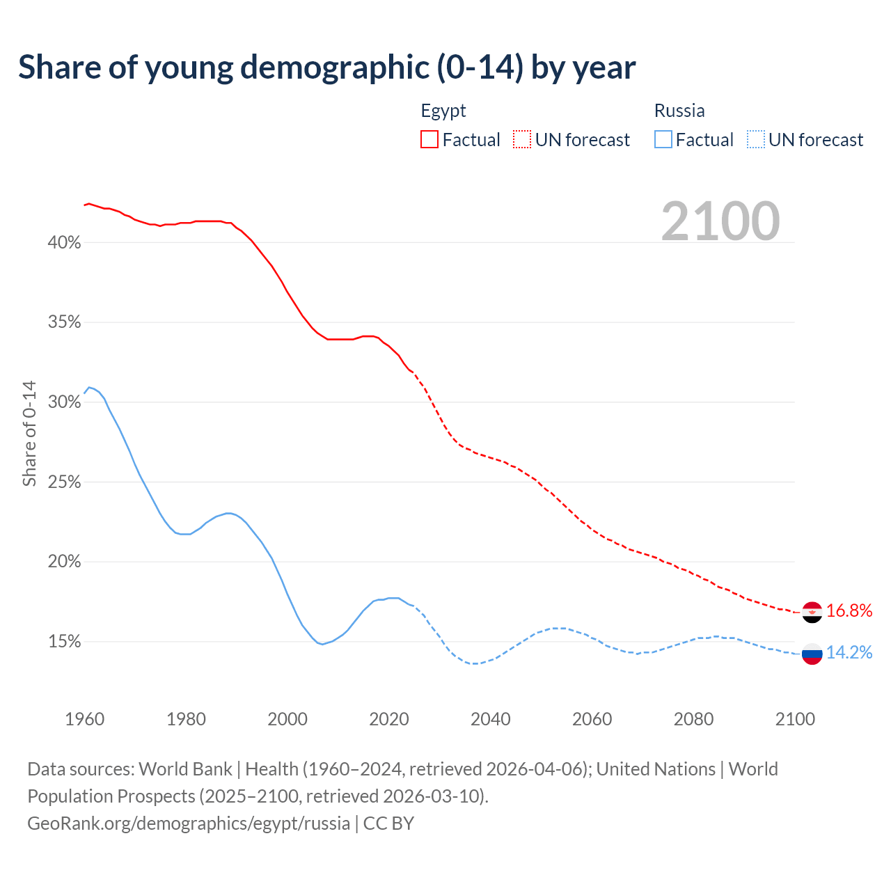 - As of 2026, the population of Egypt is 121M vs 142M in Russia.