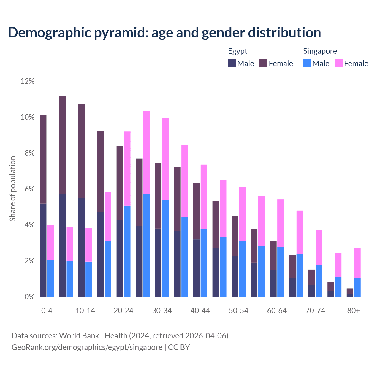 Demographics of Egypt compared to Singapore: