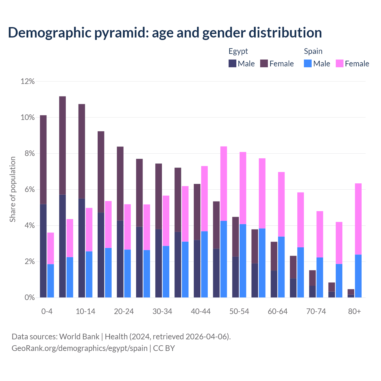 Demographics of Egypt compared to Spain: