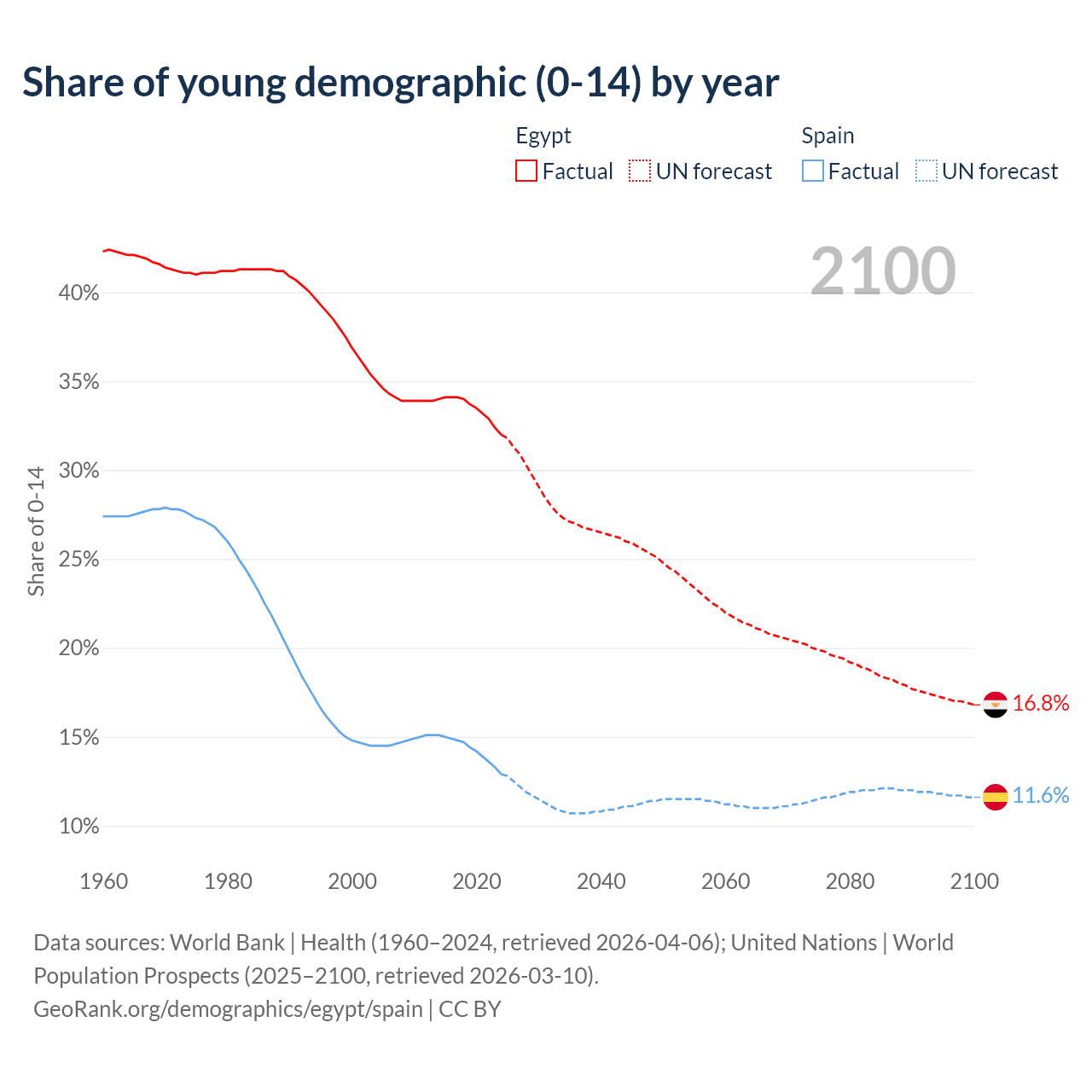 - The total fertility rate is 2.75 in Egypt compared to 1.12 in Spain.