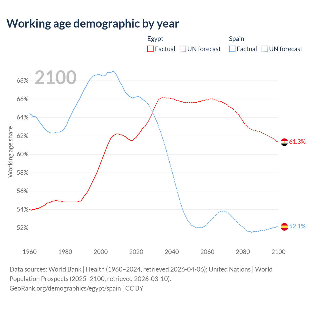 - Egypt has 75.9M working age adults (aged 15-64) vs 32.2M in Spain.