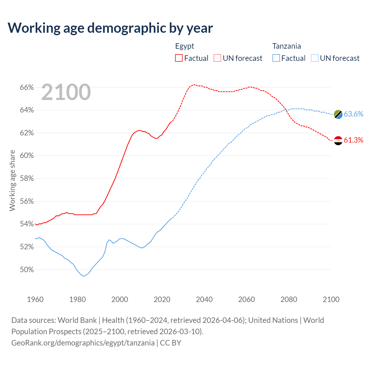 - Egypt has 75.9M working age adults (aged 15-64) vs 39.8M in Tanzania.