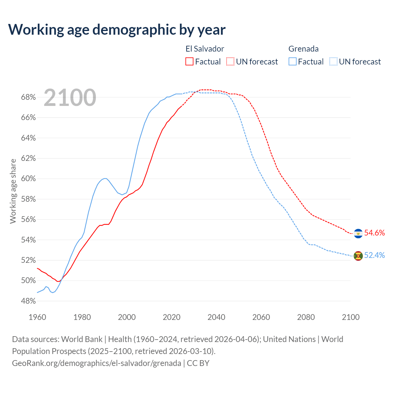 - El Salvador has 4.29M working age adults (aged 15-64) vs 80.2K in Grenada.