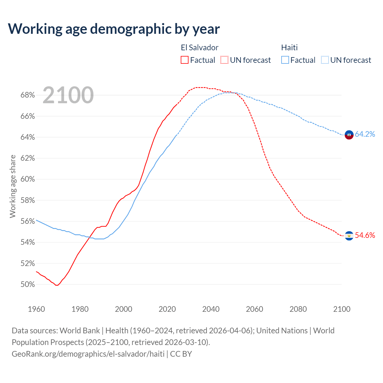 - El Salvador has 4.29M working age adults (aged 15-64) vs 7.74M in Haiti.