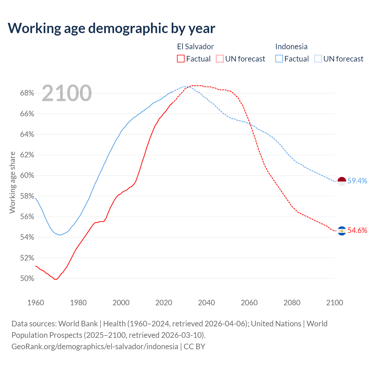- El Salvador has 4.29M working age adults (aged 15-64) vs 197M in Indonesia.