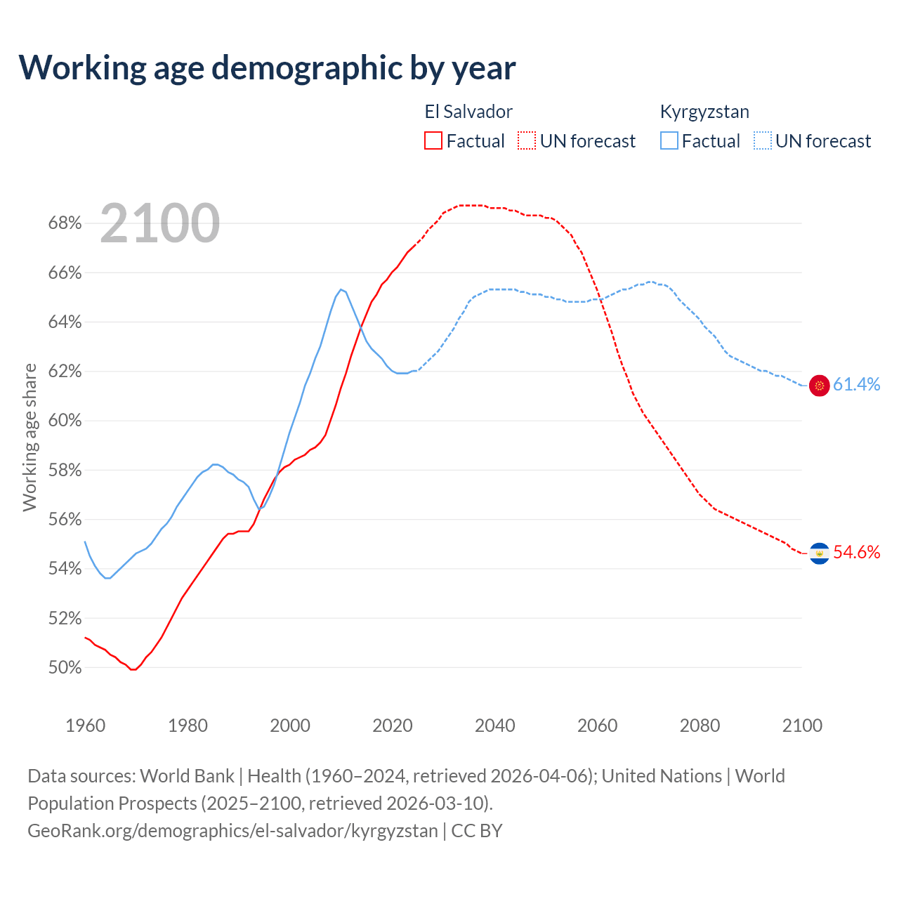 - El Salvador has 4.29M working age adults (aged 15-64) vs 4.63M in Kyrgyzstan.