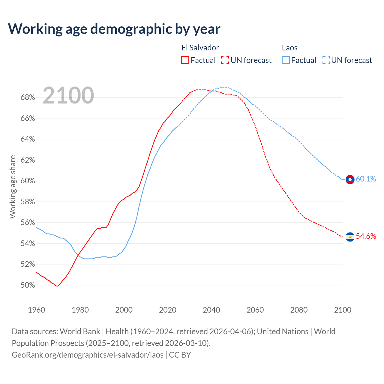 - El Salvador has 4.29M working age adults (aged 15-64) vs 5.21M in Laos.