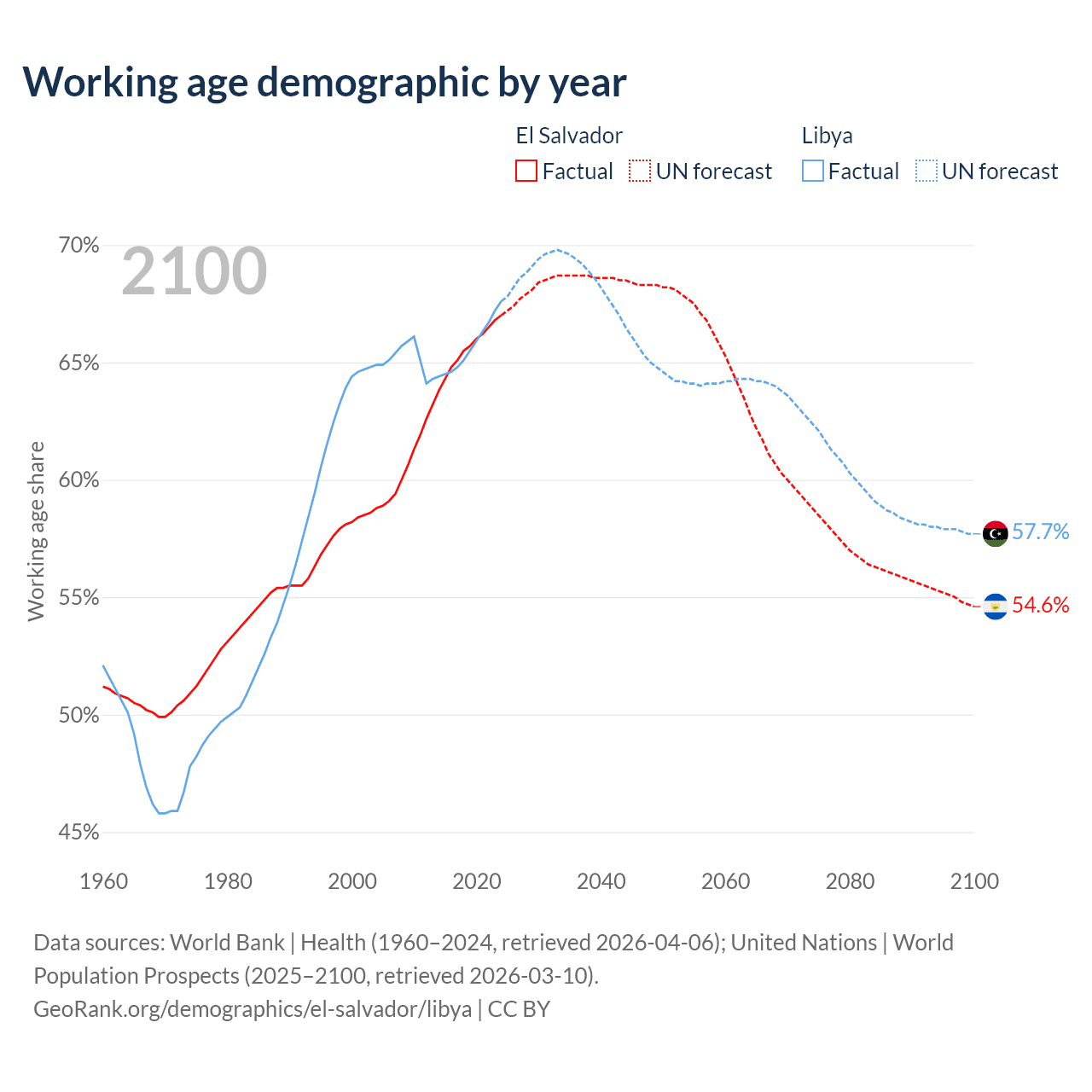 - El Salvador has 4.29M working age adults (aged 15-64) vs 5.11M in Libya.
