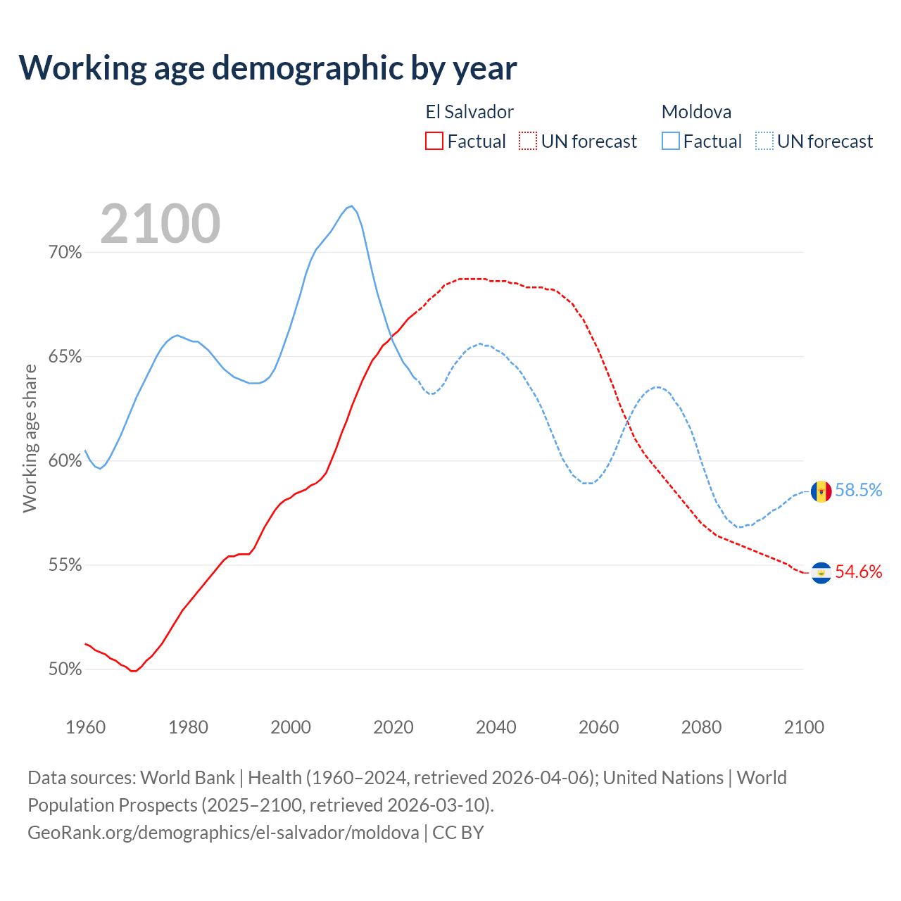 - El Salvador has 4.29M working age adults (aged 15-64) vs 1.5M in Moldova.