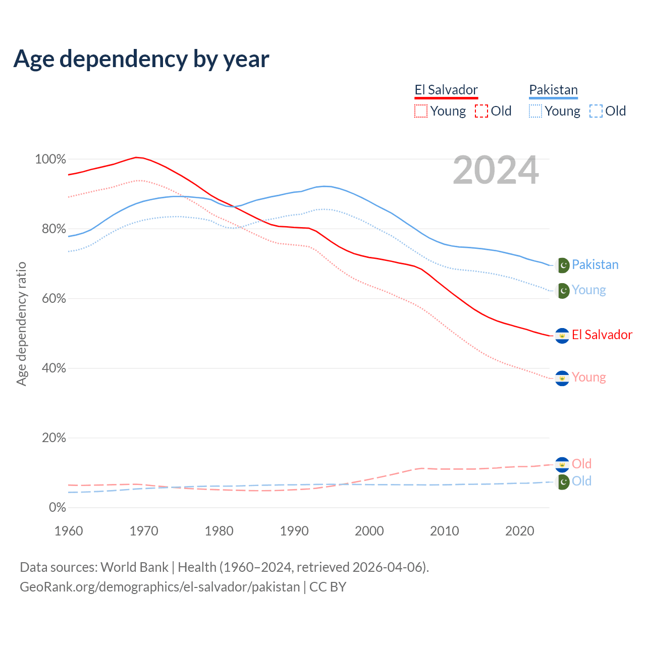 - The share of old-age demographic (65+) in El Salvador is 8.15% vs 4.28% in Pakistan.