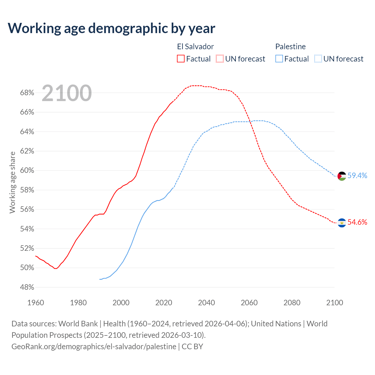 - El Salvador has 4.29M working age adults (aged 15-64) vs 3.2M in Palestine.