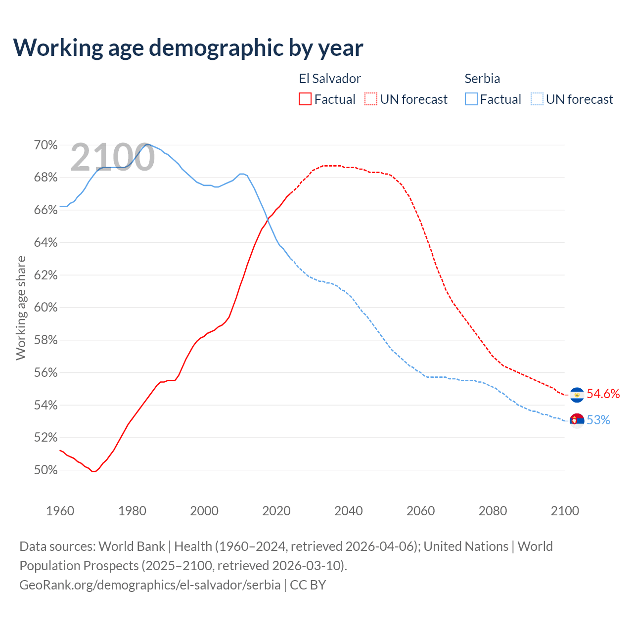 - El Salvador has 4.29M working age adults (aged 15-64) vs 4.09M in Serbia.