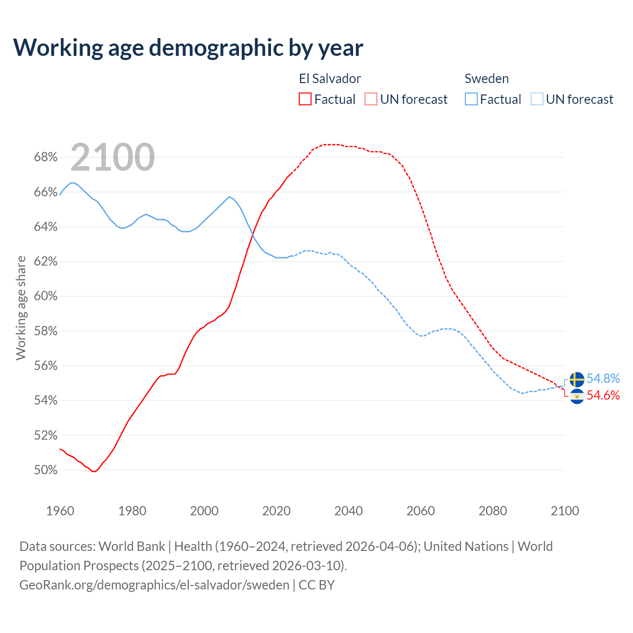 - El Salvador has 4.29M working age adults (aged 15-64) vs 6.65M in Sweden.