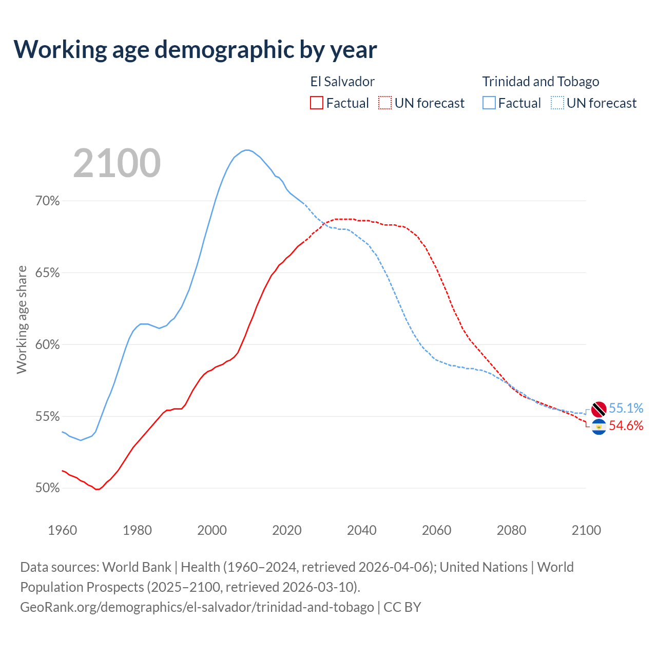- El Salvador has 4.29M working age adults (aged 15-64) vs 960K in Trinidad and Tobago.