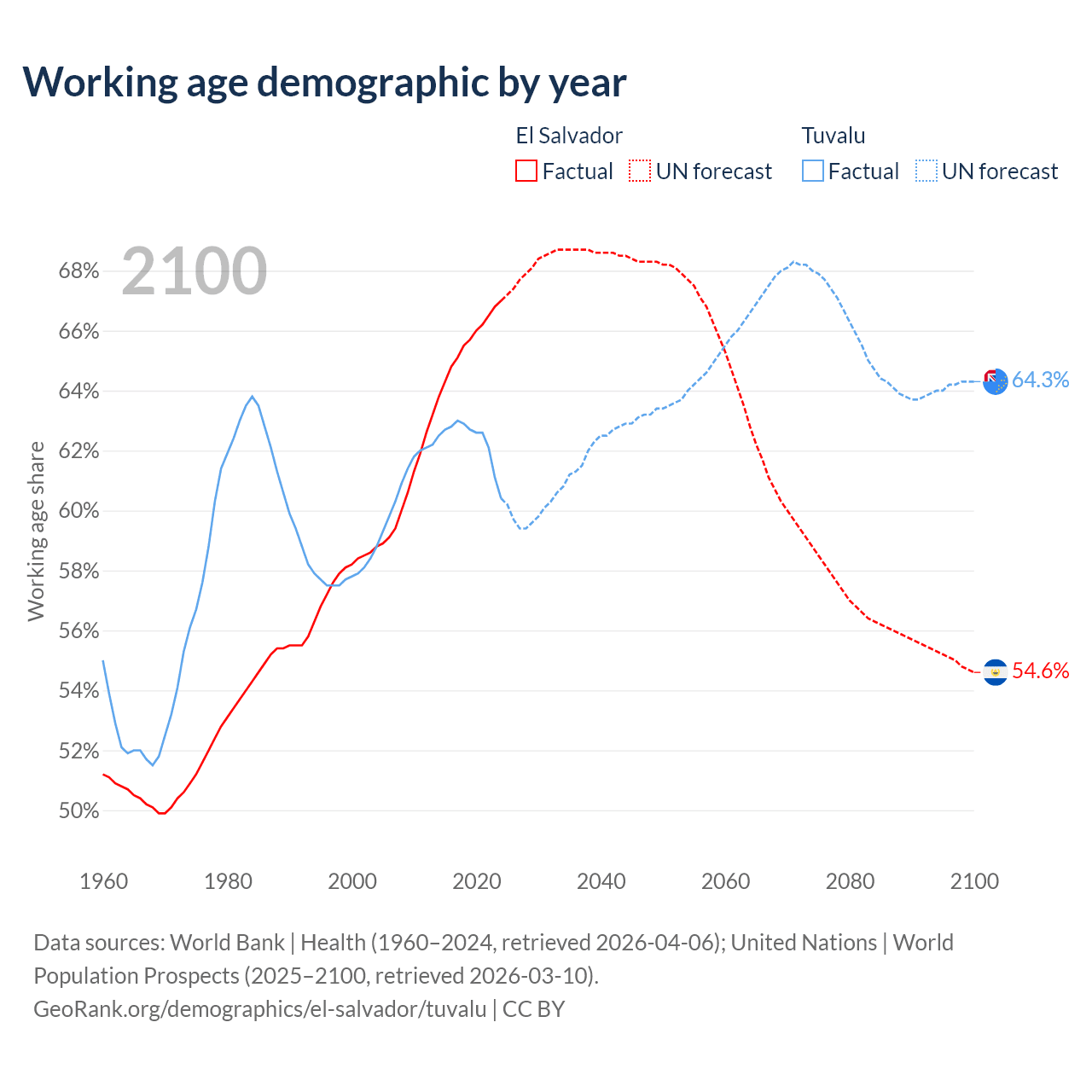 - El Salvador has 4.29M working age adults (aged 15-64) vs 5.64K in Tuvalu.