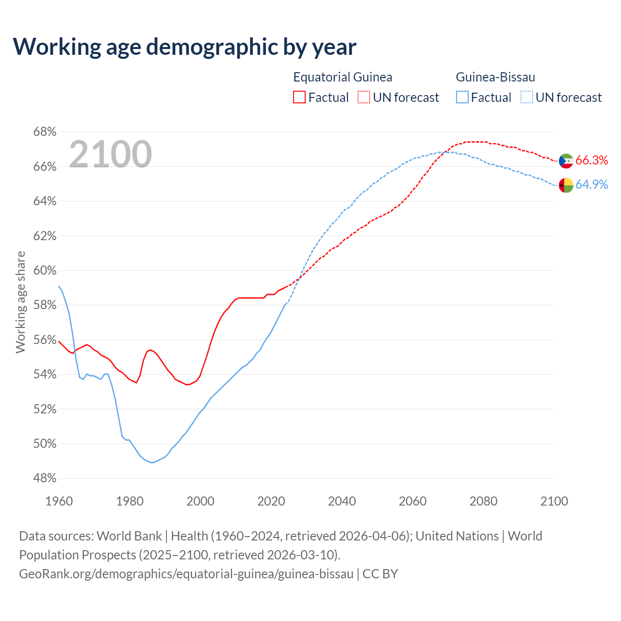 - Equatorial Guinea has 1.18M working age adults (aged 15-64) vs 1.34M in Guinea-Bissau.
