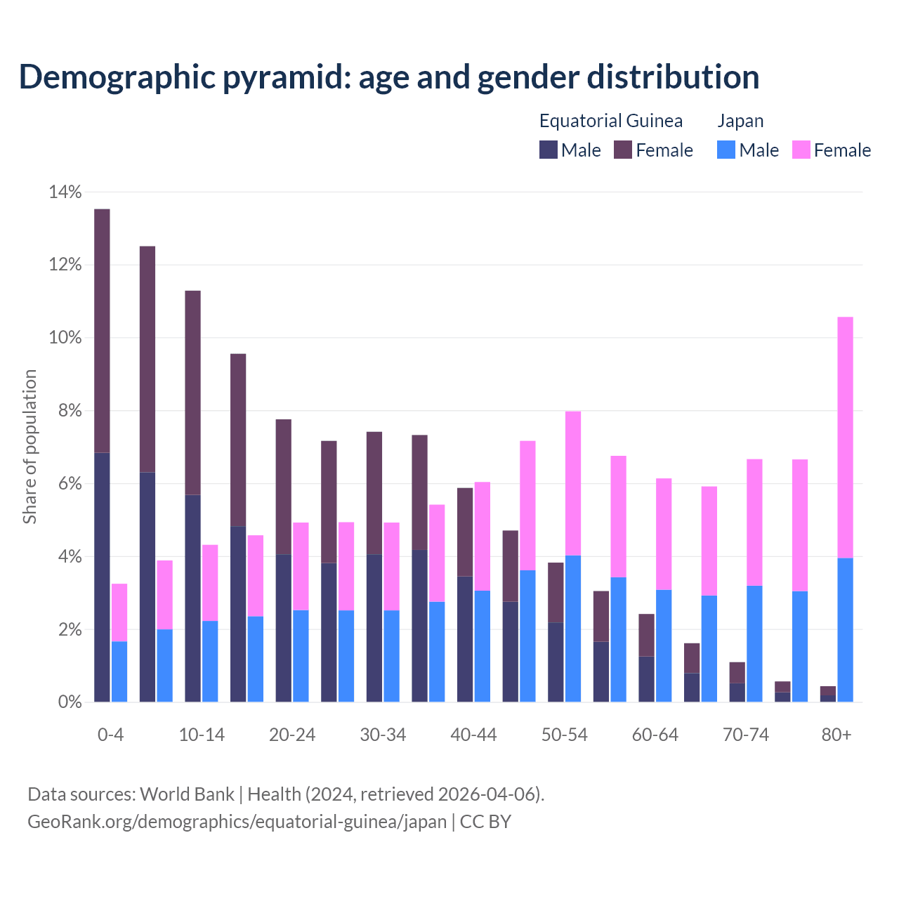 Demographics of Equatorial Guinea compared to Japan: