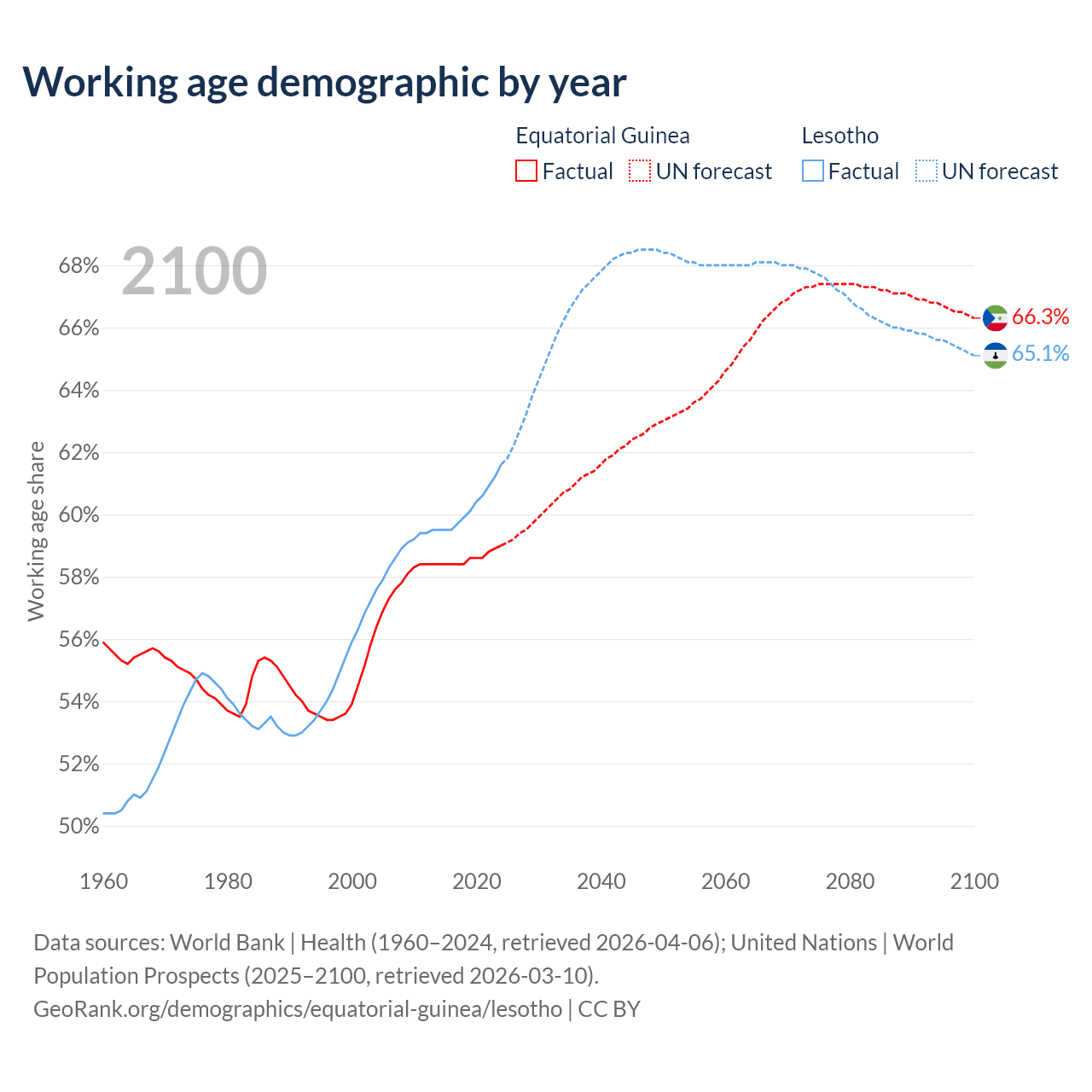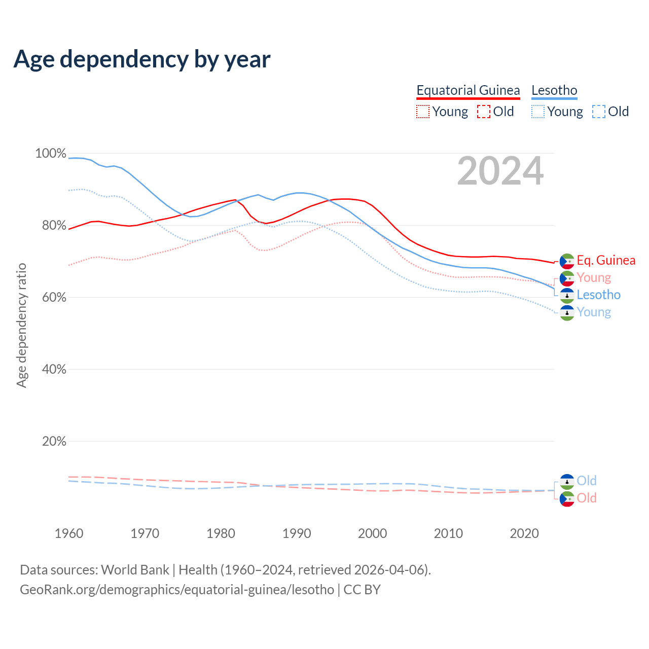 - The share of old-age demographic (65+) in Equatorial Guinea is 3.69% vs 3.86% in Lesotho.