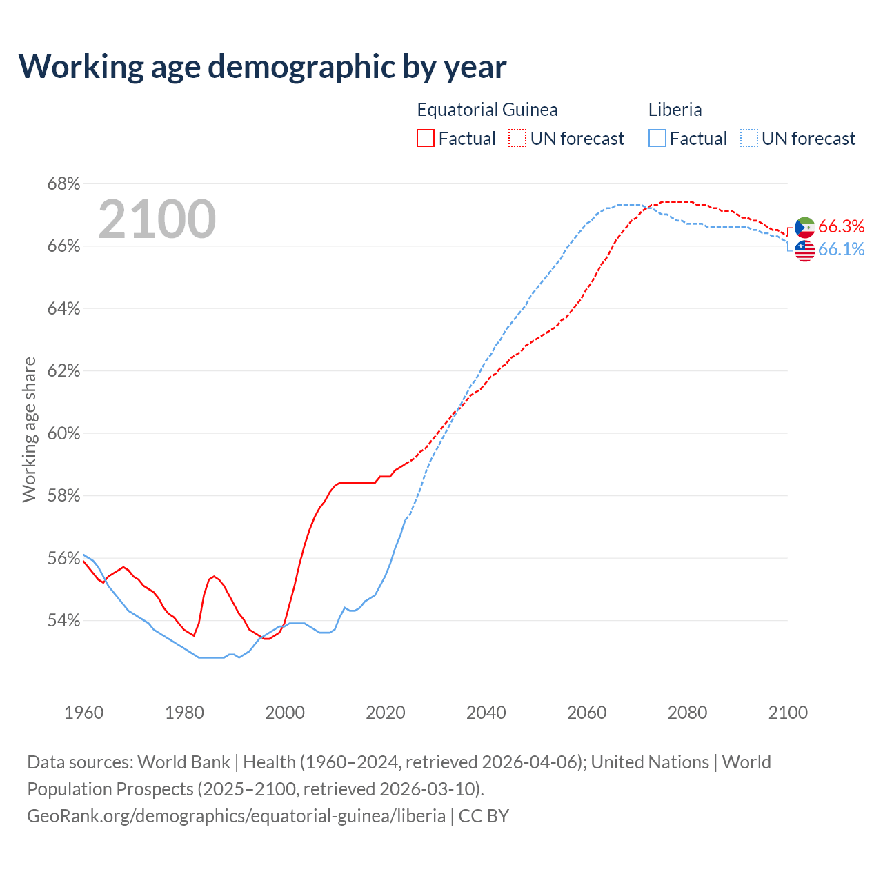 - Equatorial Guinea has 1.18M working age adults (aged 15-64) vs 3.37M in Liberia.
