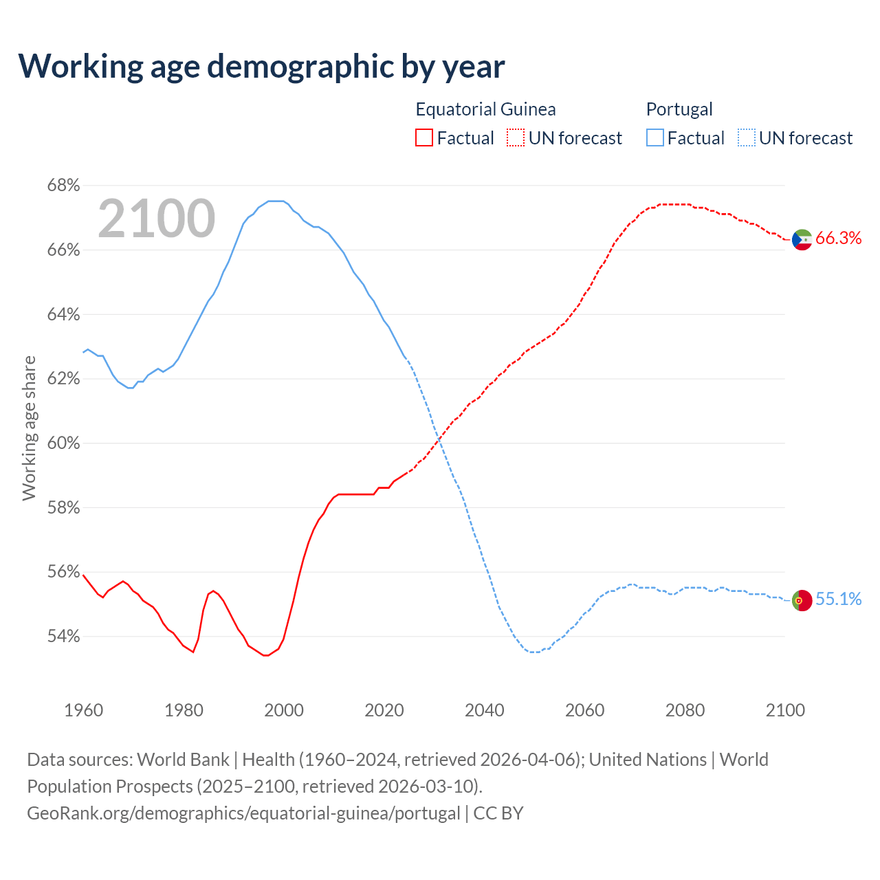 - Equatorial Guinea has 1.18M working age adults (aged 15-64) vs 6.68M in Portugal.