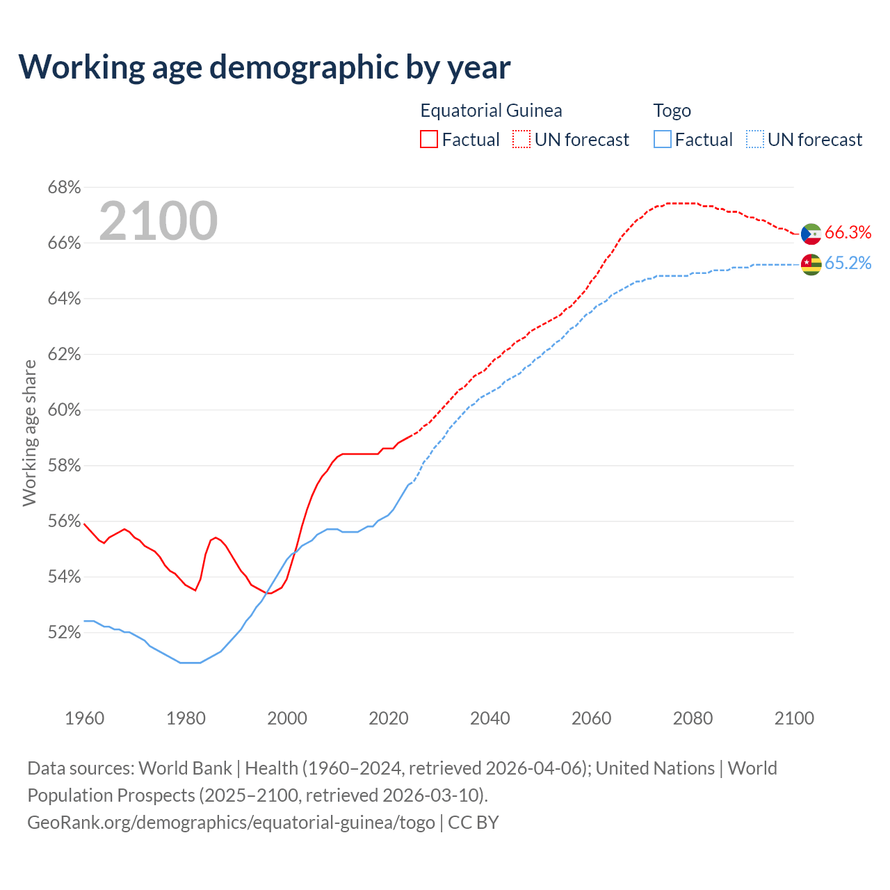 - Equatorial Guinea has 1.18M working age adults (aged 15-64) vs 5.72M in Togo.