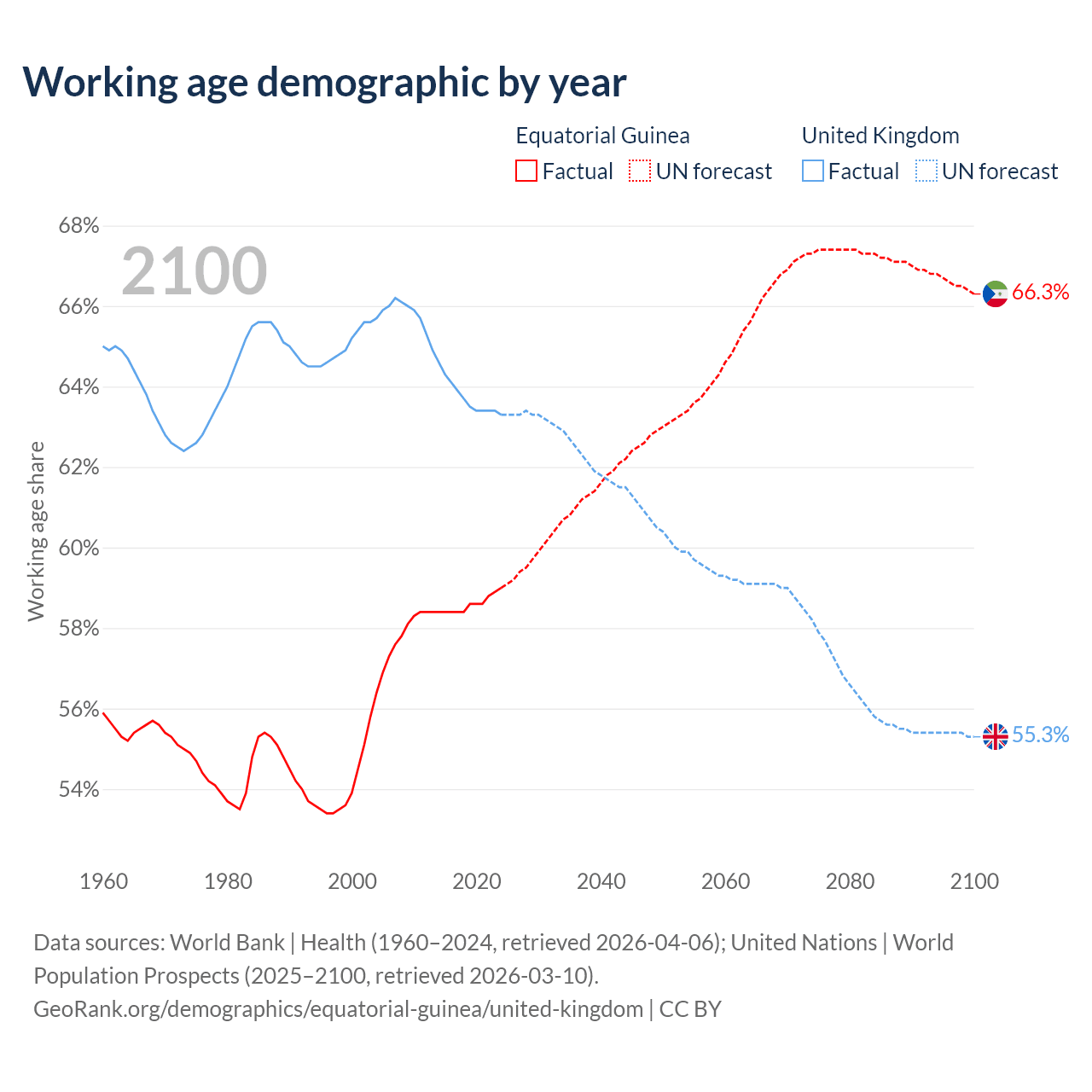 - Equatorial Guinea has 1.18M working age adults (aged 15-64) vs 44.4M in the United Kingdom.