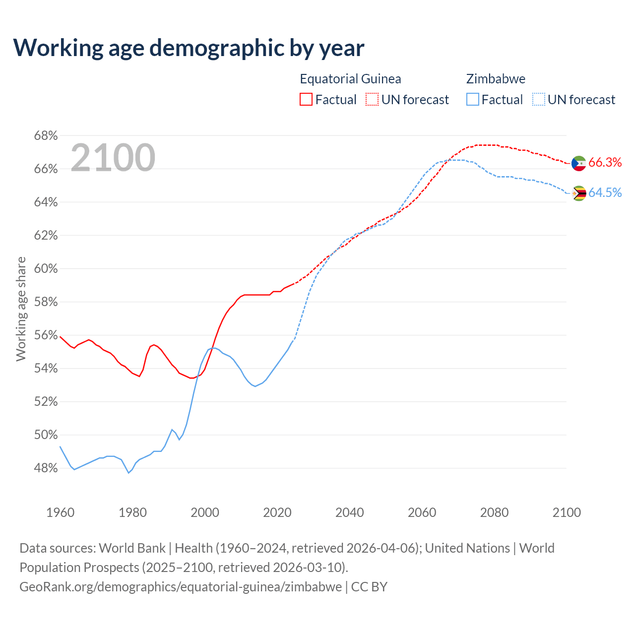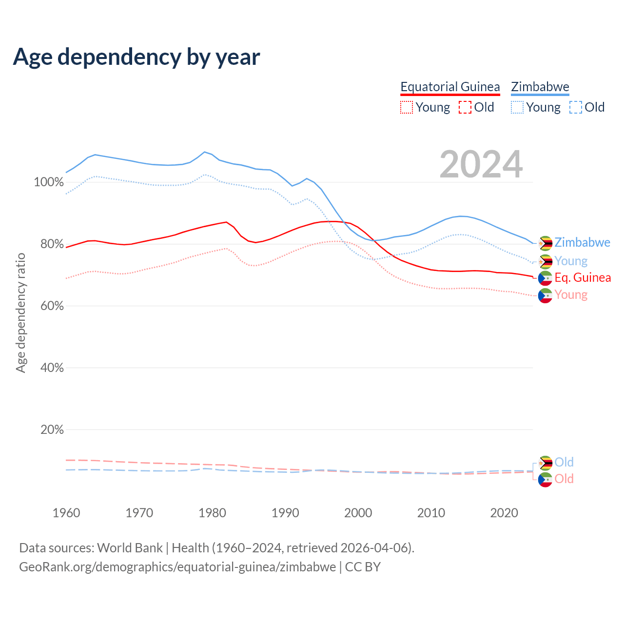 - The share of old-age demographic (65+) in Equatorial Guinea is 3.69% vs 3.6% in Zimbabwe.