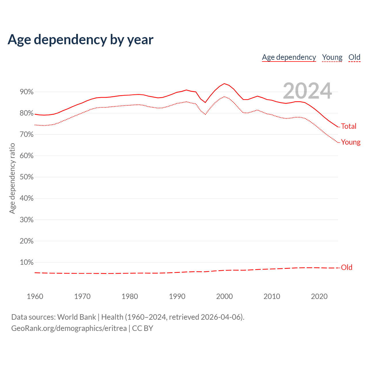 Data sources: World Bank | Health (1960–2024, retrieved 2026-04-06); U.S. Census Bureau (1960–2024, retrieved 2026-02-08).