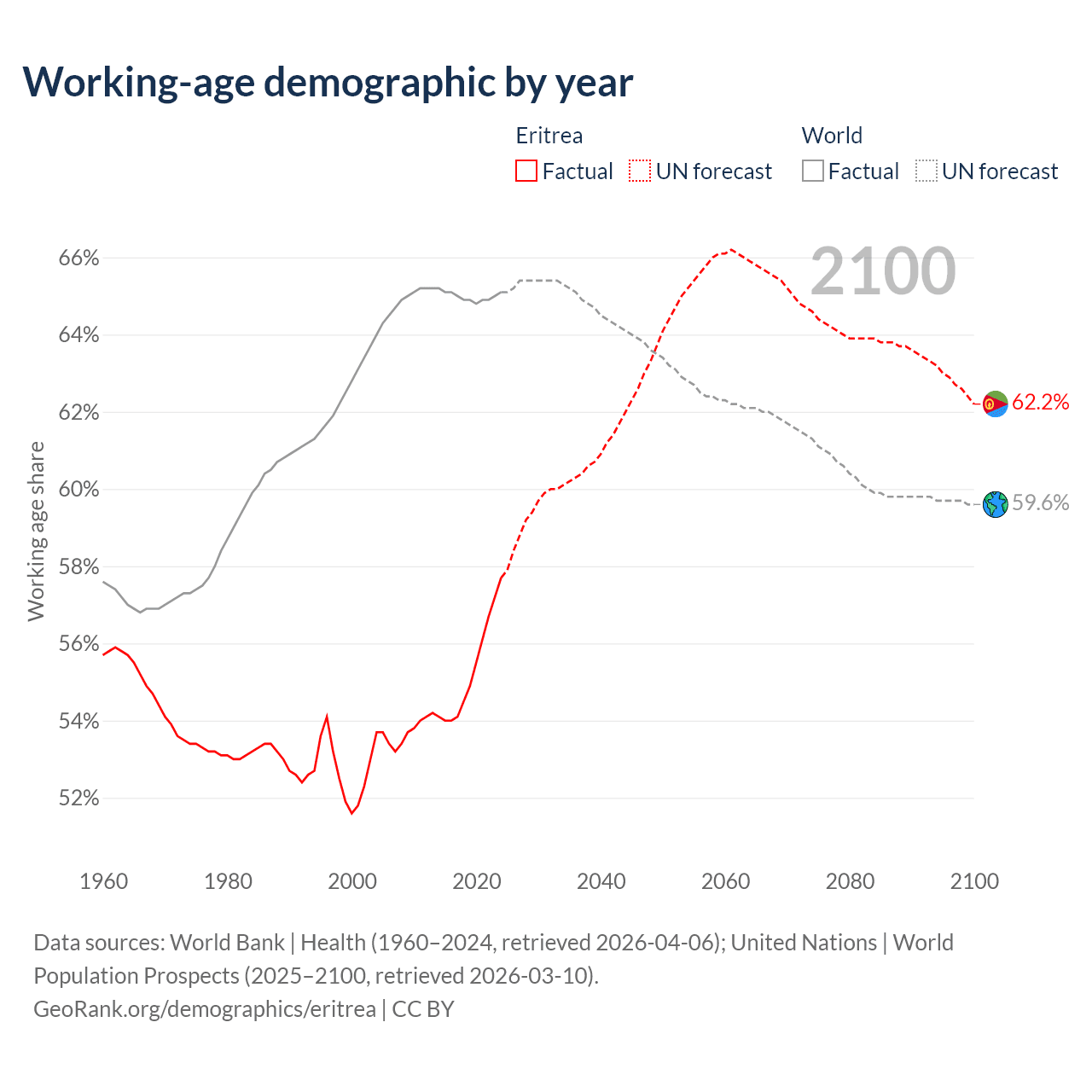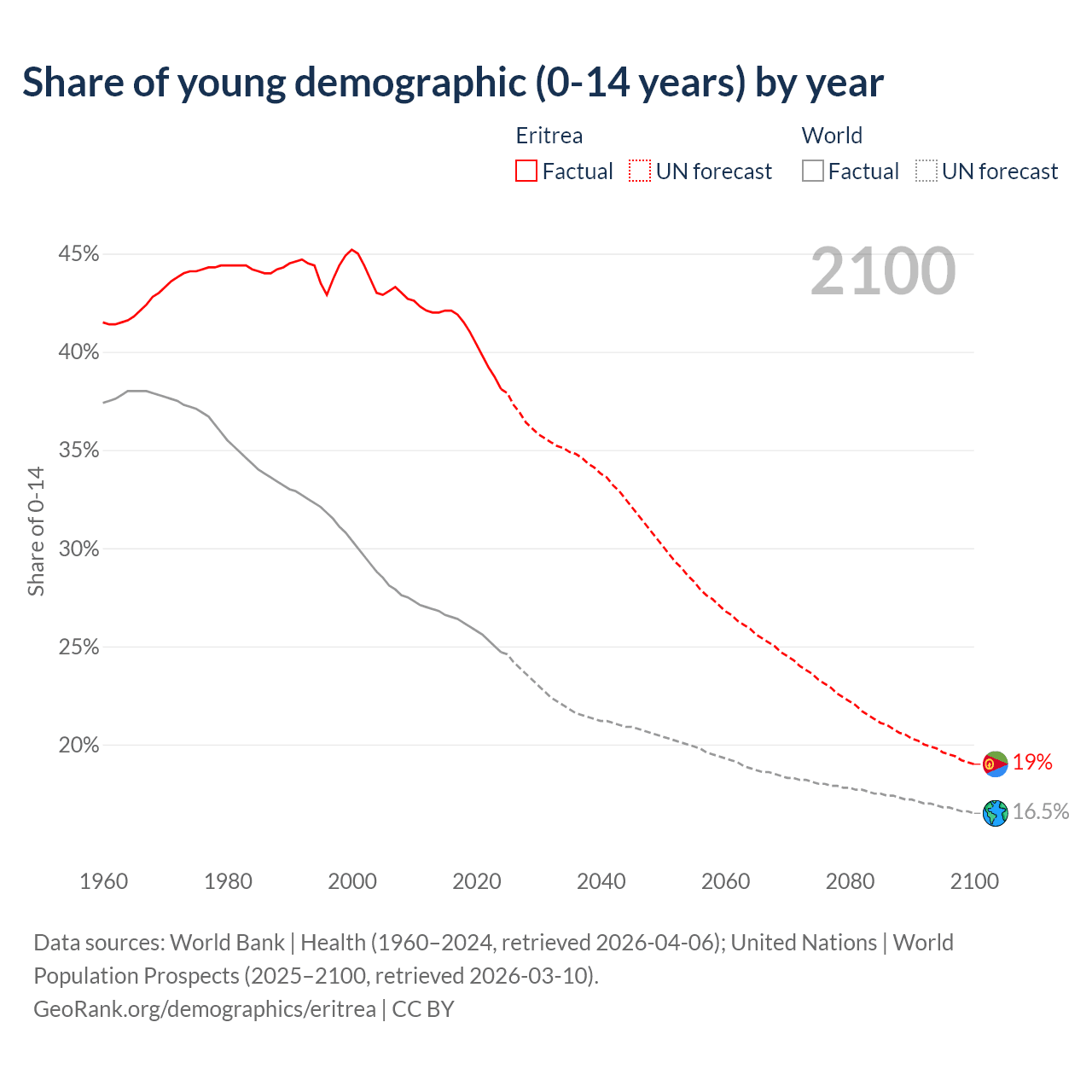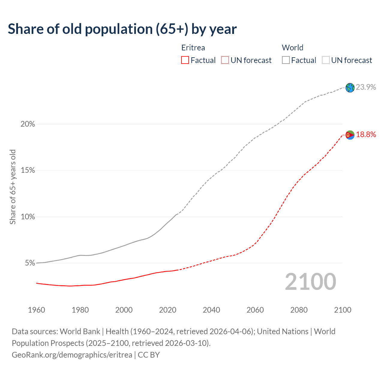 Median age in Eritrea, 1960–2100