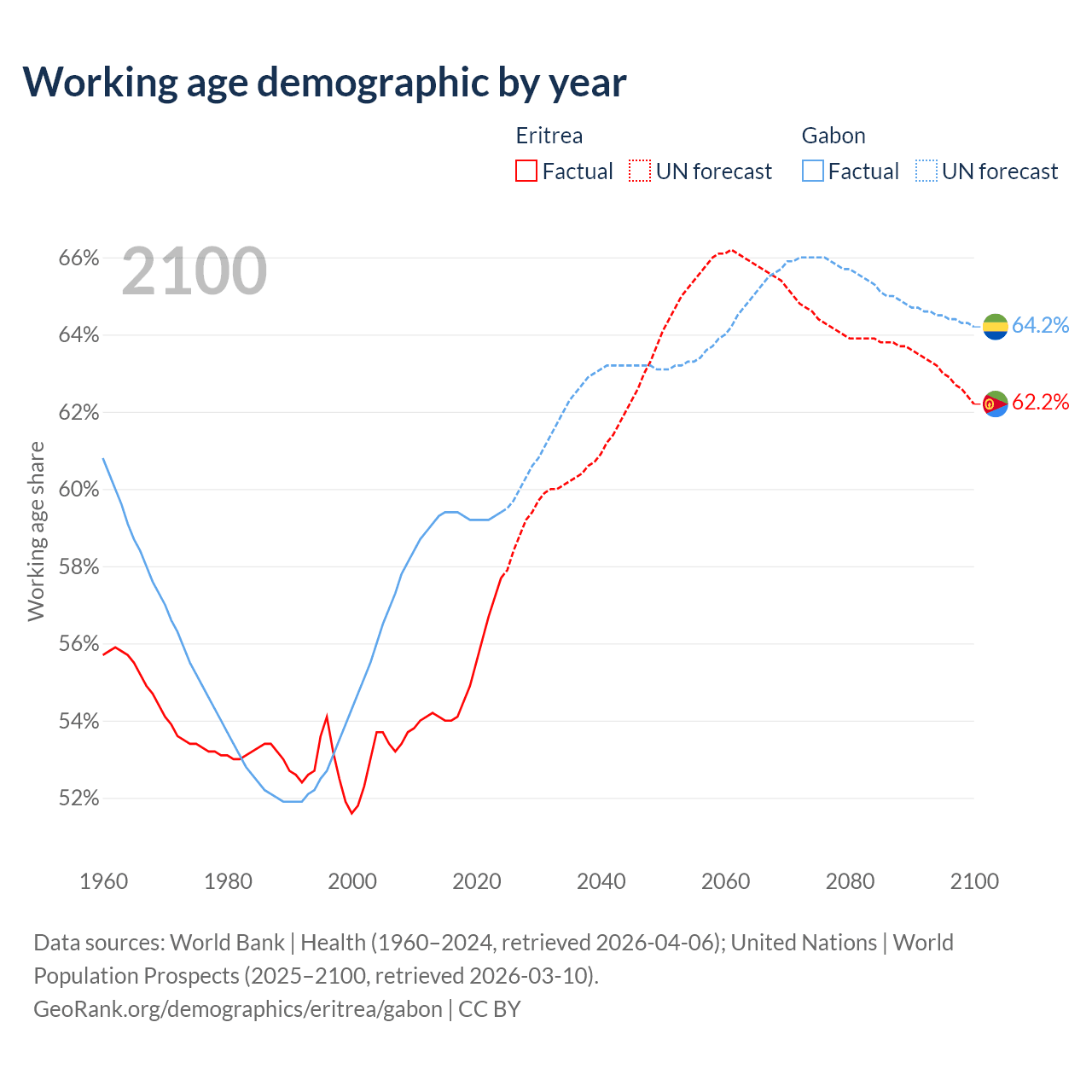 - Eritrea has 2.13M working age adults (aged 15-64) vs 1.58M in Gabon.
