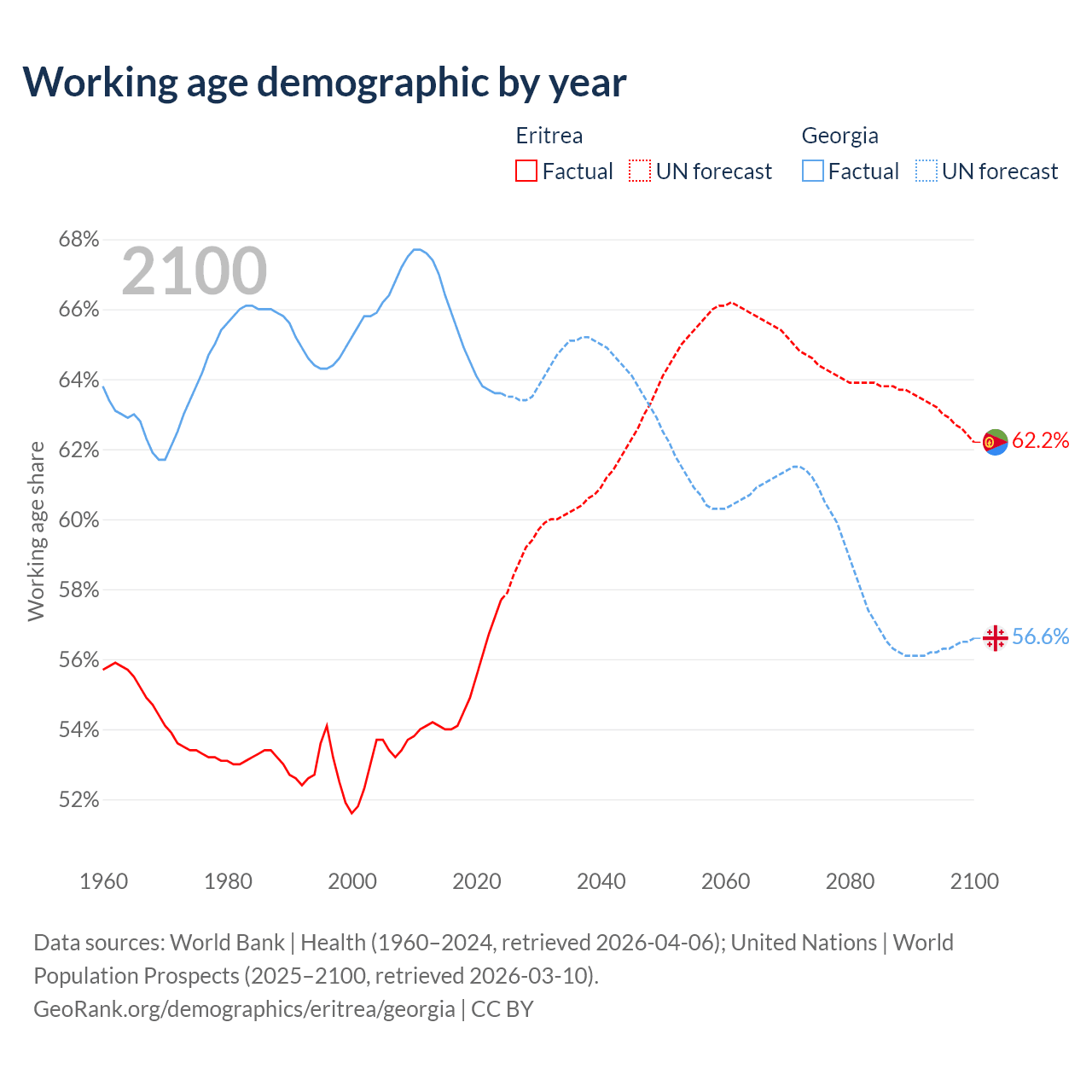 - Eritrea has 2.13M working age adults (aged 15-64) vs 2.35M in Georgia.