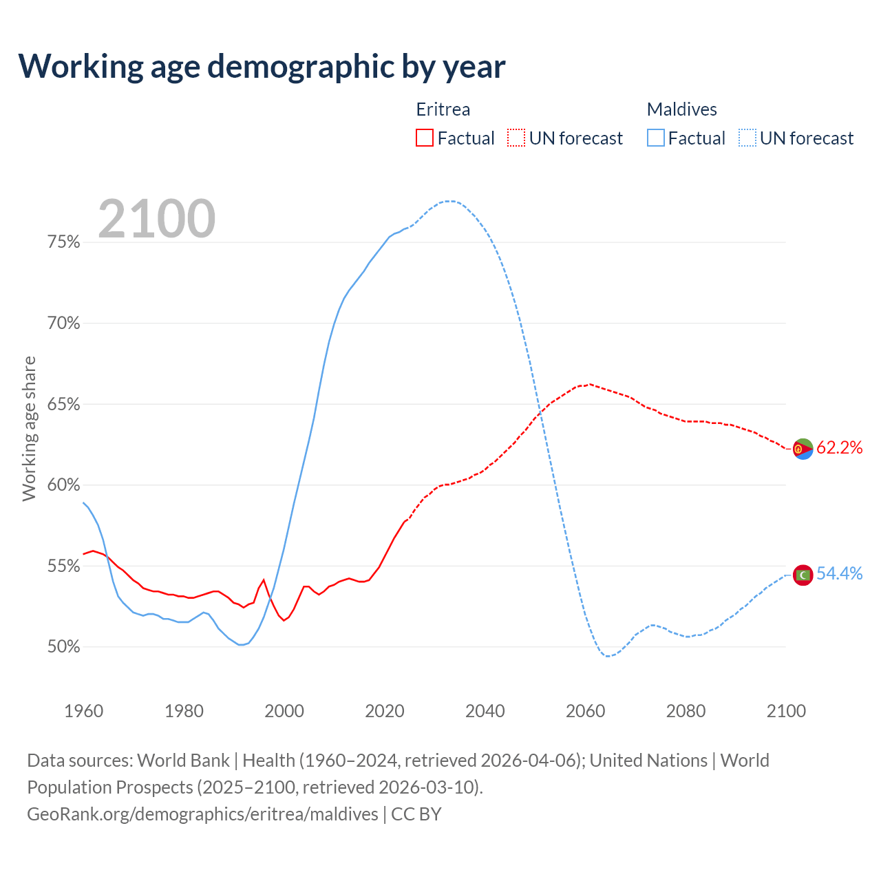 - Eritrea has 2.13M working age adults (aged 15-64) vs 403K in Maldives.