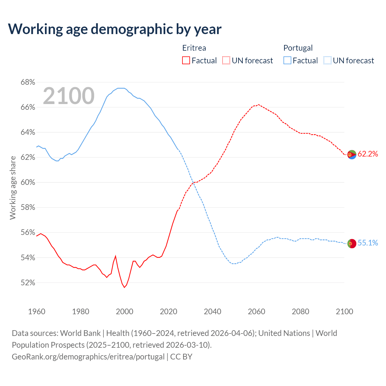 - Eritrea has 2.13M working age adults (aged 15-64) vs 6.68M in Portugal.